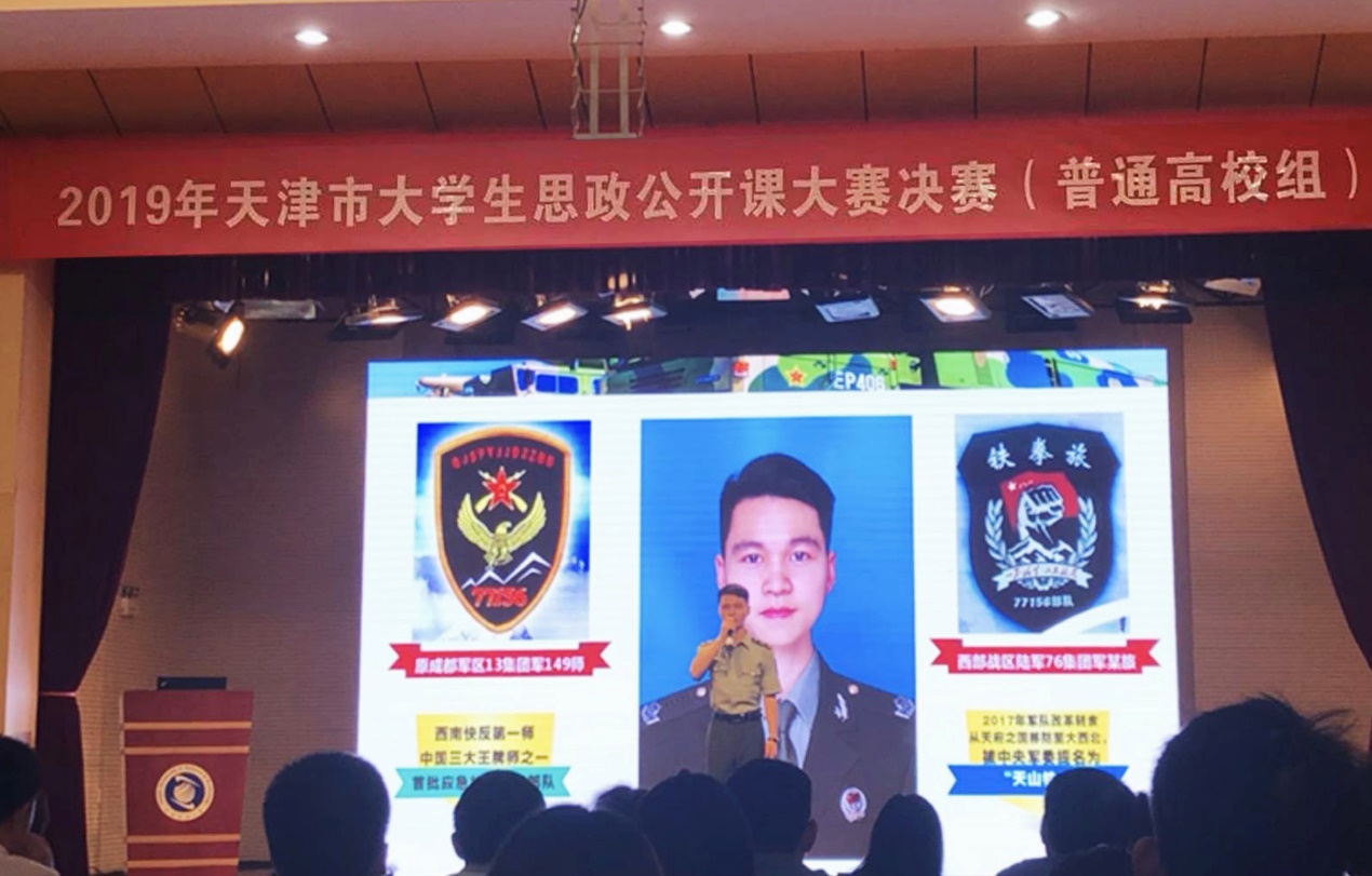 本次大赛由市委教育工委、市教委主办,天津科技大学承办,大赛分初赛、复赛、决赛三个阶段进行,决赛共设一等奖2个,二等奖3个,三等奖5个,优秀奖5个,来自全市15所高校的15支参赛团队百余人参与了本次决赛。李美盛团队在王蕾老师的指导下,前期准备充分,以《中国梦 强军梦——新形势下当代大学生的青春强军梦》为主题,从退伍大学生的视角分析了富国强军的历史必然性和现实紧迫性,解读了当前国家改革强军的六大举措,总结了在两年的军旅生涯中如何用青春热血见证强军之梦,以及退伍回归大学校园后如何心系国防,继续为中国梦、强军梦贡献着自己的一份青春力量。李美盛团队在决赛中的表现得到了赛场专家评委、各高校骨干教师和同学们的一致好评,为我校赢得了荣誉。