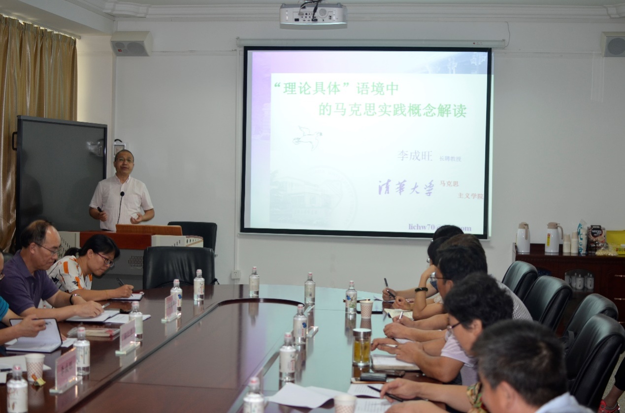 第一阶段由清华大学长聘教授、伟德bv1946博士生导师李成旺教授做了题为“‘理论具体’语境中的马克思实践概念解读”专题报告,李教授梳理了古代以来的西方哲学思想,把它们概括为“逻辑在先”思维模式,而马克思思想与之最大的区别就在于坚持逻辑的与历史的相统一原则,坚持从人类社会的物质生产实践出发去理解人类社会自身的历史,从而克服了旧思维模式的唯心主义局限性,创立了自己的历史唯物主义。