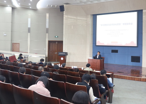 10月25日下午,学院举办“学习贯彻习近平文化思想”专题报告会,天津市社科联党组成员、专职副主席袁世军和天津日报副刊部副主任王爽分别就如何学习贯彻习近平文化思想作专题报告。报告会由副校长黄凤羽主持,党委宣传部主要负责同志、伟德bv1946领导班子、全体思政课教师、辅导员,以及马克思主义理论学科研究生参加报告会。