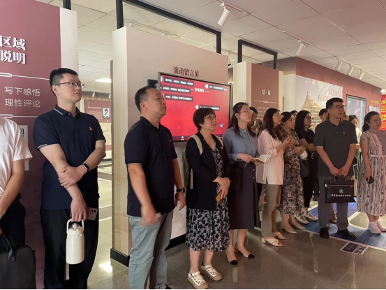 刘振强对天津市委党校专家一行的来访表示欢迎,向参观人员详细介绍了重点实验室的建设理念、建设思路和发展规划,对实验室100个党史党建故事和300个习近平总书记的故事进行了讲解,介绍了AI数字人赋能故事讲解等创新点,并和专家共同观看了《引领伟大复兴的百年先锋》专题片。贾锡萍对实验室建设给予了高度肯定,她强调研究党建而不研究党史就没有根基,研究党史而不研究党建就没有高度,实验室把党的建设和党史研究结合在一起,是对党史党建教学、研究的探索和创新,对于新时代开展党员干部党性教育具有重要的价值,希望实验室今后深化党史党建研究、宣传,发挥更大资政育人作用。