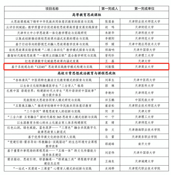 近日,天津市教育科学规划领导小组办公室发布《关于公布天津市教学成果重点培育项目(思政专项)立项的通知》,我校伟德bv1946党委书记刘振强主持的《基于系统观念的“12345”思政课实践教学模式构建与实践》获批立项。