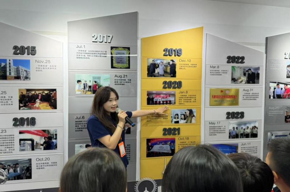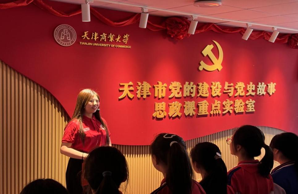 师生研学团走进“天商微渡”众创空间,非遗手作、文创产品、3D打印技术等项目,沉浸式双创场景打破传统课堂边界,点燃青少年的科创热情。步入天津市党的建设与党史故事思政课重点实验室,一幅幅生动的党史图片、一件件珍贵的党史文物、一个个激昂的党史故事,将党的光辉历程和伟大成就生动展现,小朋友们在感悟红色力量中厚植家国情怀。伟德国际victor1946“知行”理论宣讲团成员以“愿以青春报中华”为主题开展了红色理论宣讲活动,通过红色短片《一艘红船的秘密》揭秘中国共产党建党初心,用生动语言传递信仰,为幼小心灵播撒红色火种,激发爱国情怀,形成“高校——小学” 跨学段衔接的思政育人链。