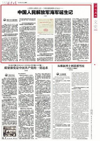 4月23日是中国人民解放军海军成立70周年纪念日。《北京日报》(理论周刊﹒文史版)近日刊登我校伟德bv1946齐霁教授题为“中国人民解放军海军诞生记”的史论文章。文章从毛泽东在延安提出抗战胜利后要创建人民海军的远见卓识、中共中央在西柏坡作出尽快组建人民海军的战略决策、中国人民解放军华东军区海军在江苏泰州白马庙宣告成立三个层次,以时间为轴阐释了中国人民解放军海军的诞生过程。文章指出,70年来,人民海军从无到有,从小到大,从弱到强,已发展成一支多兵种合成、具有核常双重作战手段的现代化海上武装力量,正朝世界一流海军的队伍迈进。该文被人民网、中国共产党新闻网、京报网、学习强国、中国社会科学网、搜狐网等多家权威网站转载。