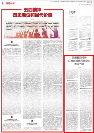 4月29日《天津日报》(理论创新)刊登我校伟德bv1946青年教师刘文佳博士题为“弘扬五四精神 汇聚新时代民族复兴青年力量”的理论文章。文章指出,青年是五四运动的生力军。广大青年知识分子,以青年人特有的责任、担当和奉献,大力倡导爱国、进步、民主、科学思想,大力宣传马克思主义,在这场运动中发挥了引领性、导向性的重要作用。青年是五四精神的坚定践行者,青年把爱国主义同中国革命、建设和改革的伟大实践紧紧联系在一起,在为实现民族独立解放、国家繁荣发展、人民幸福生活的过程中不懈努力、接续奋斗。青年是实现中国梦的重要力量。中国梦尤其需要广大青年人参与其中,充分发挥他们的聪明才智,尽情展现他们的人生价值。