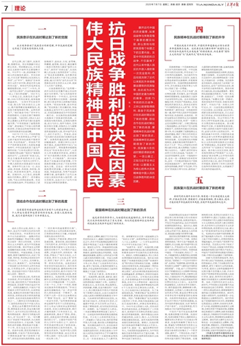 7月7日,《天津日报》(理论版)整版刊发天津市中国特色社会主义理论体系研究中心商业大学基地研究员,我校伟德bv1946杨东博士理论阐释文章“伟大民族精神是中国人民抗日战争胜利的决定因素”。文章指出,翻开近代中国的历史篇章,如果说战争与失败是每个篇章的醒目标题,那么割地与赔款就是每个标题之下的主要内容。及至中华民族的抗日战争,不仅赢得了近代以来中国人民反抗外敌入侵的第一次完全胜利,而且彻底洗刷了近代以来抵抗外来侵略屡战屡败的民族耻辱,由此成为近代中国历史最为辉煌的篇章。回顾75年前的抗日战争,之所以能够取得胜利,是由于民族意识在抗战时期达到了新的觉醒,团结合作在抗战时期达到了新的高度,爱国精神在抗战时期达到了新的顶点,民族精神在抗战时期得到了新的升华,民族复兴在抗战时期获得新的希望。一言以蔽之,正如习近平总书记所说:以爱国主义为核心的伟大民族精神是中国人民抗日战争胜利的决定因素。文章从民族意识在抗战时期达到了新的觉醒,团结合作在抗战时期达到了新的高度,爱国精神在抗战时期达到了新的顶点,民族精神在抗战时期得到了新的升华,民族复兴在抗战时期获得了新的希望五个方面进行详细阐述。