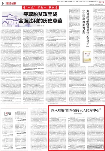 7月27日,《天津日报》(理论创新版)刊发天津市中国特色社会主义理论体系研究中心伟德国际victor1946基地研究员,我校伟德bv1946柴观珍教授理论文章“深入理解‘始终坚持以人民为中心’”。文章指出,《习近平谈治国理政》第三卷将“坚持以人民为中心”单列为一个专题,深刻阐述了其内涵要义。自党的十八届五中全会首次提出以人民为中心的发展思想后,习近平总书记在国内外多个场合反复强调并持续丰富完善。始终坚持以人民为中心的发展思想,不仅贯穿于党的十九大以来党中央治国理政各个方面,成为新时代坚持和发展中国特色社会主义的基本方略之一,而且是新时代中国全面深化改革的重要原则和价值取向,构成我国国家制度和国家治理体系的显著优势。文章从更好的日子──使发展成果更多更公平惠及全体人民;根本的立场──马克思主义政党区别于其他政党的显著标志;崇高的位置──以百姓心为心,与人民同呼吸、共命运、心连心;最大的底气──中华人民共和国的坚实根基和中国共产党强党兴国的根本所在四个层面对以人民为中心的发展思想进行了具体阐释。
