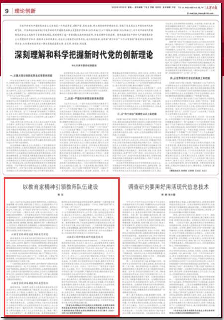 百年大计,教育为本;教育大计,教师为本;教师大计,师德为本。党的二十大报告指出,加强师德师风建设,培养高素质教师队伍,弘扬尊师重教社会风尚。近日,习近平总书记致信全国优秀教师代表,从理想信念、道德情操、育人智慧、躬耕态度、仁爱之心、弘道追求等六个方面,深刻阐释了教育家精神的丰富内涵和实践要求。为深入学习宣传贯彻党的二十大精神,贯彻落实习近平总书记教师节重要指示精神,我校教师积极结合教育教学工作实际撰写宣传阐释理论文章,9月25日,《天津日报》“理论创新”专版刊发伟德bv1946思政课教师陈臣的理论文章《以教育家精神引领教师队伍建设》。